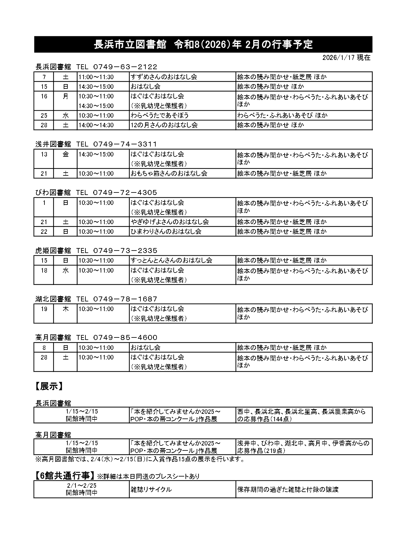 詳しくは一覧表をご覧ください。(令和8年1月17日現在の情報です)