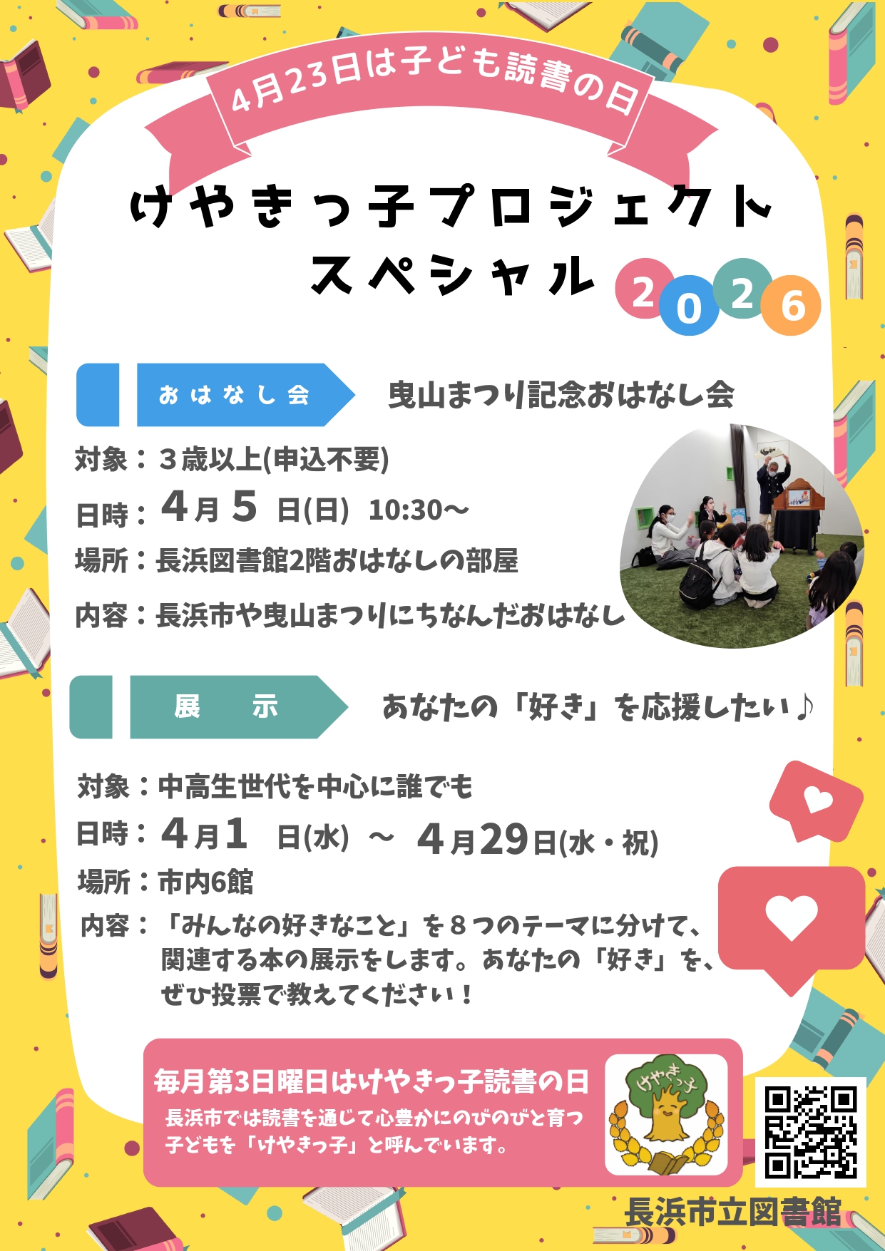 令和8年4月5日(日) 10:30~  長浜図書館2階 おはなしの部屋